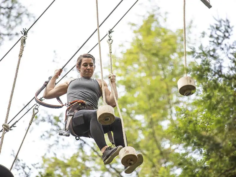 The Aerial Tree Top Adventure course is an elevated obstacle course set in the beautiful Adirondack Mountains and securely suspended between the trees at 10 to 60 feet off the ground. Some of the features of the course include giant Tyrolean Zip lines, suspended bridges, swinging surprises, Tarzan swings, nets and much more.